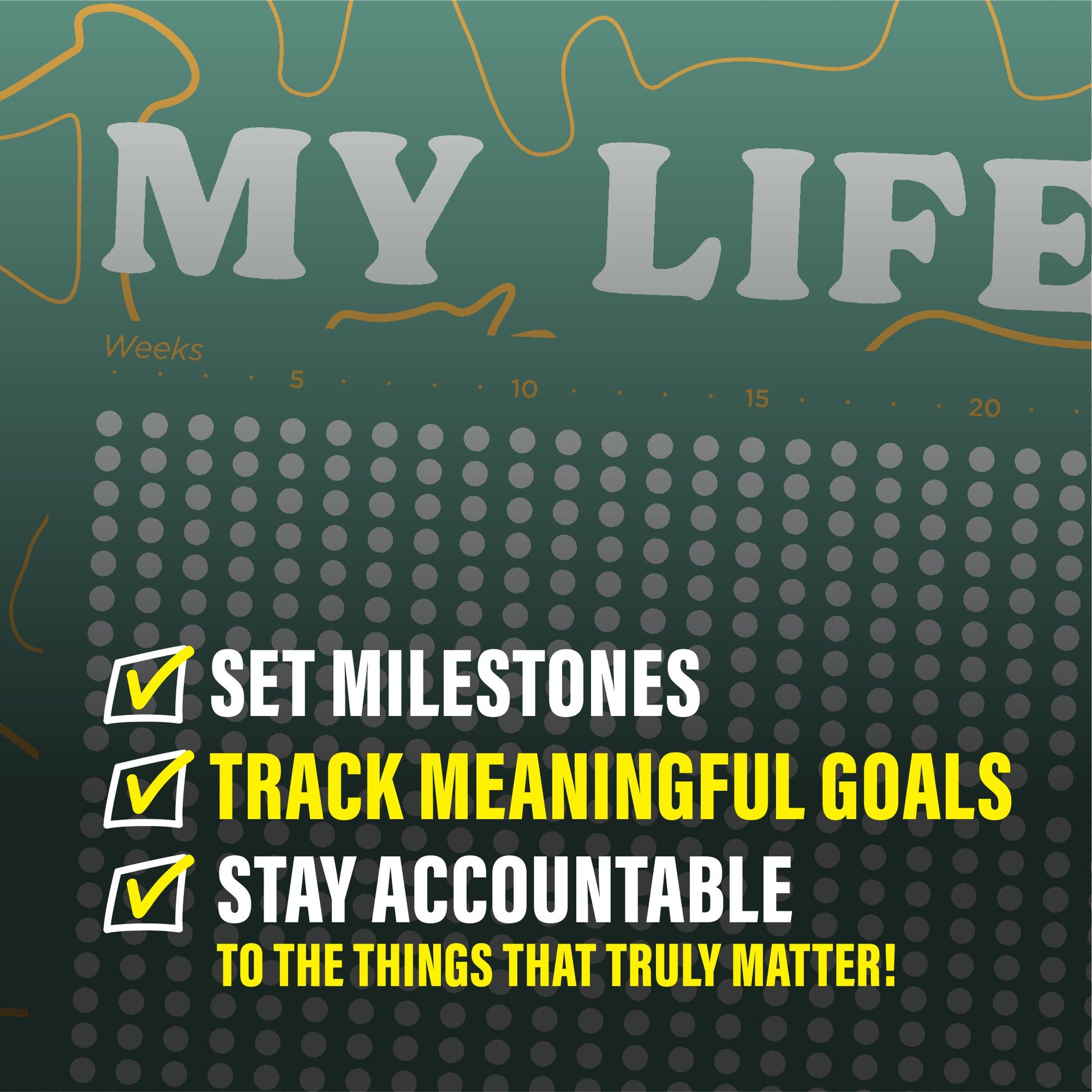 Each week is represented, allowing you to mark off time as it passes. This countdown feature motivates you to make the most of every moment, turning time into a tangible asset for your personal development.